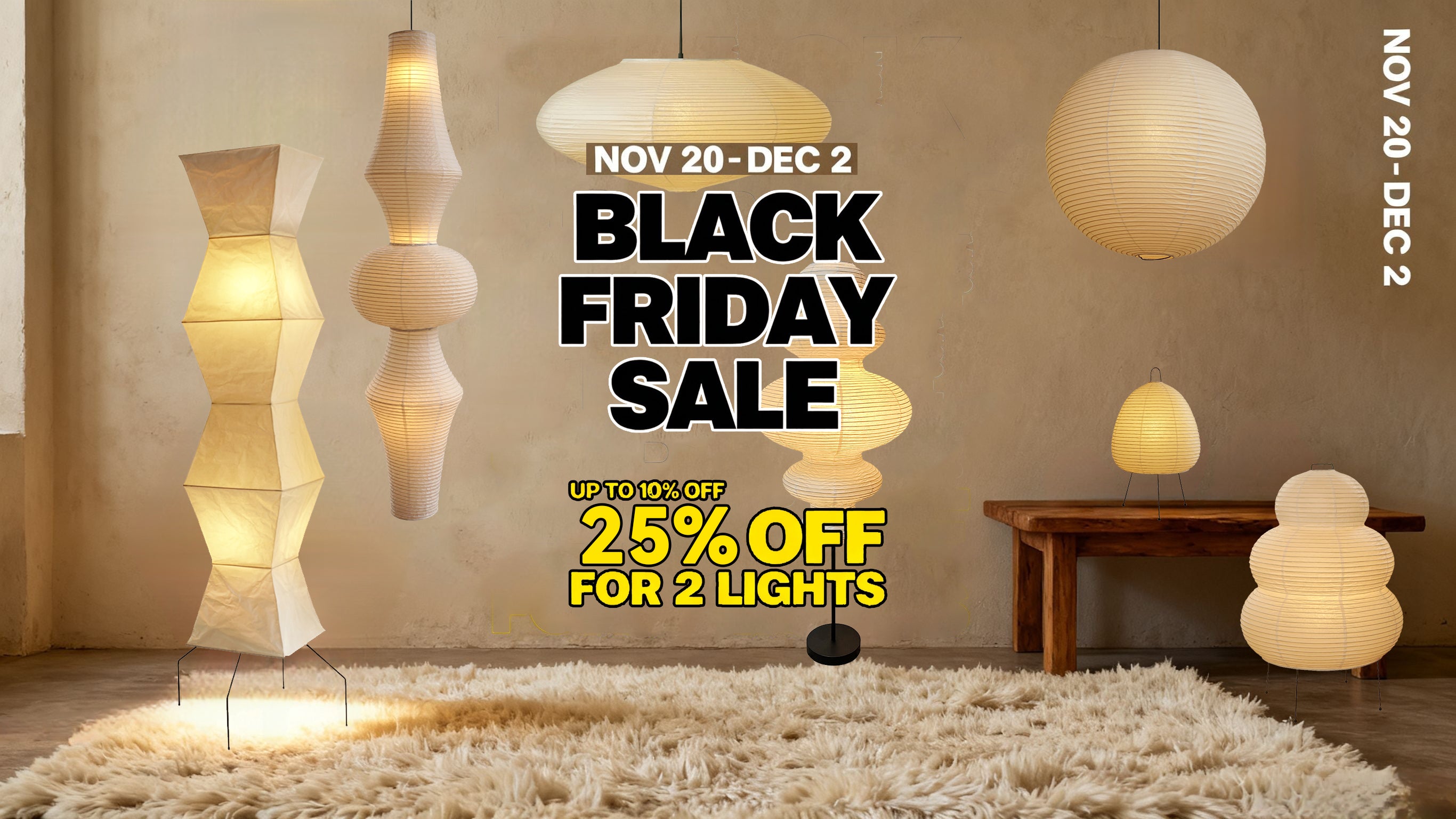 Discover artisanal NOGUCHI-inspired akari paper lamps: Elegant pendant lights, minimalist floor lamps & table lights. Hand-folded washi paper, warm glow. Free shipping worldwide.